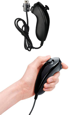 Con un mando de Wii en una mano y el Nunchuk en la otra, consigues otro nivel de control. Por ejemplo: en algunos juegos, el mando de Wii es la espada y el Nunchuk es el escudo; en un juego de fútbol americano el Nunchuk te permite tener un quarterback más elusivo mientras buscas un receptor a quien tirarle con el mando de Wii; en los juegos en primera persona puede usarse para controlar al personaje, liberando al Wiimote para las funciones de apuntar y disparar; en el boxeo de Wii Sports se deben usar los dos mandos, uno para cada puño. |