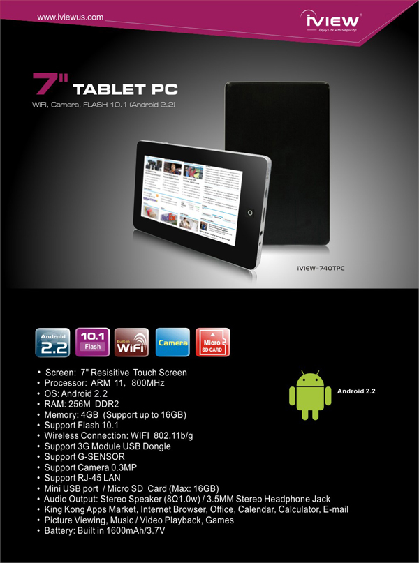 Memoria: 2 GB almacenamiento, 16x32 MB DDR1 RAM, soporta micro SD / SDHC TF hasta 32 GB.
